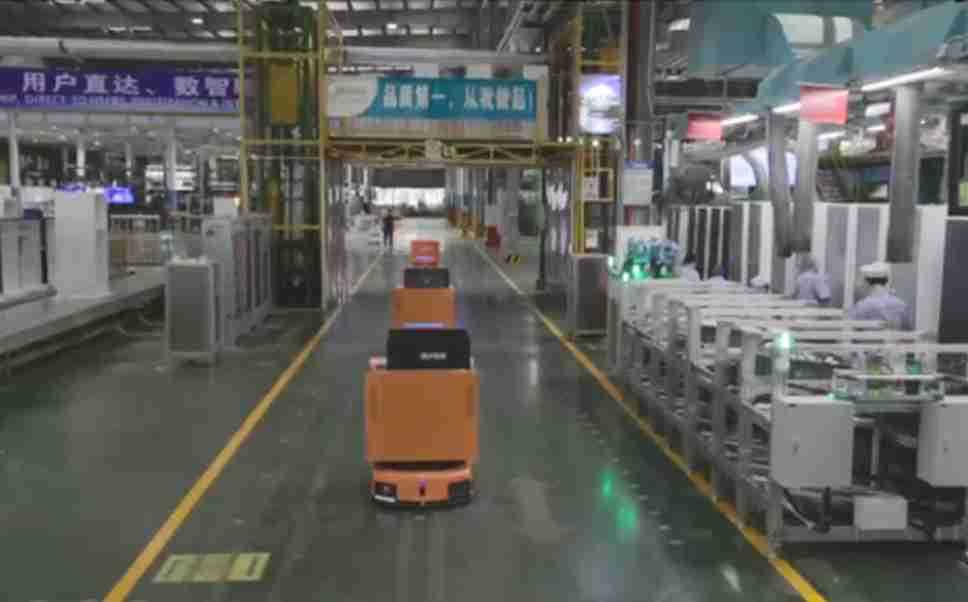 为车载冰箱物流配送打造的智能解决方案,,包含产中物流通过潜伏举升AMR搬运至线边,,,产后成品物流智能仓储,,,,流程包含产中物流智能齐套入库,,线边安灯叫料AMR智能配送至线边,,,成品入库、、、出库,,,通过无人堆高车机器人,,,智能仓储管理替代人工作业管理,,,实现更高存储、、更高效率、、、、更具柔性化的解决方案。。。