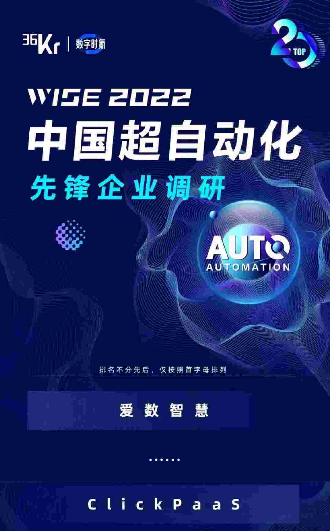 8月10日,,,,,,,,由36Kr主办的WISE 2022中国超自动化峰会在杭州成功举办。。。。。。华为钱包作为国内低代码PaaS平台的领军企业,,,,,,,,,,,,,凭借过硬的技术实力和优质的产品能力,,,,,,,,,,在本次峰会中实力入选「2022年中国超自动化先锋企业」20强。。。。。。。